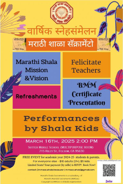The Marathi Shala for children in Sacramento was founded nearly 13 years ago by the Sawant family and has since been carried forward with dedication by a team of teachers and volunteers.